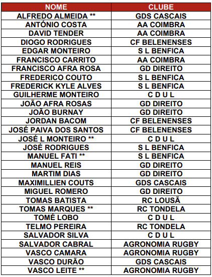 1.ª Convocatória Seleção Nacional de Sevens Masculina
