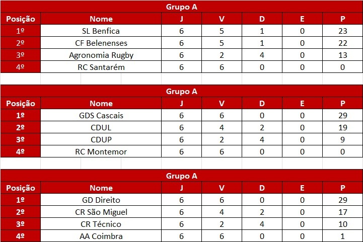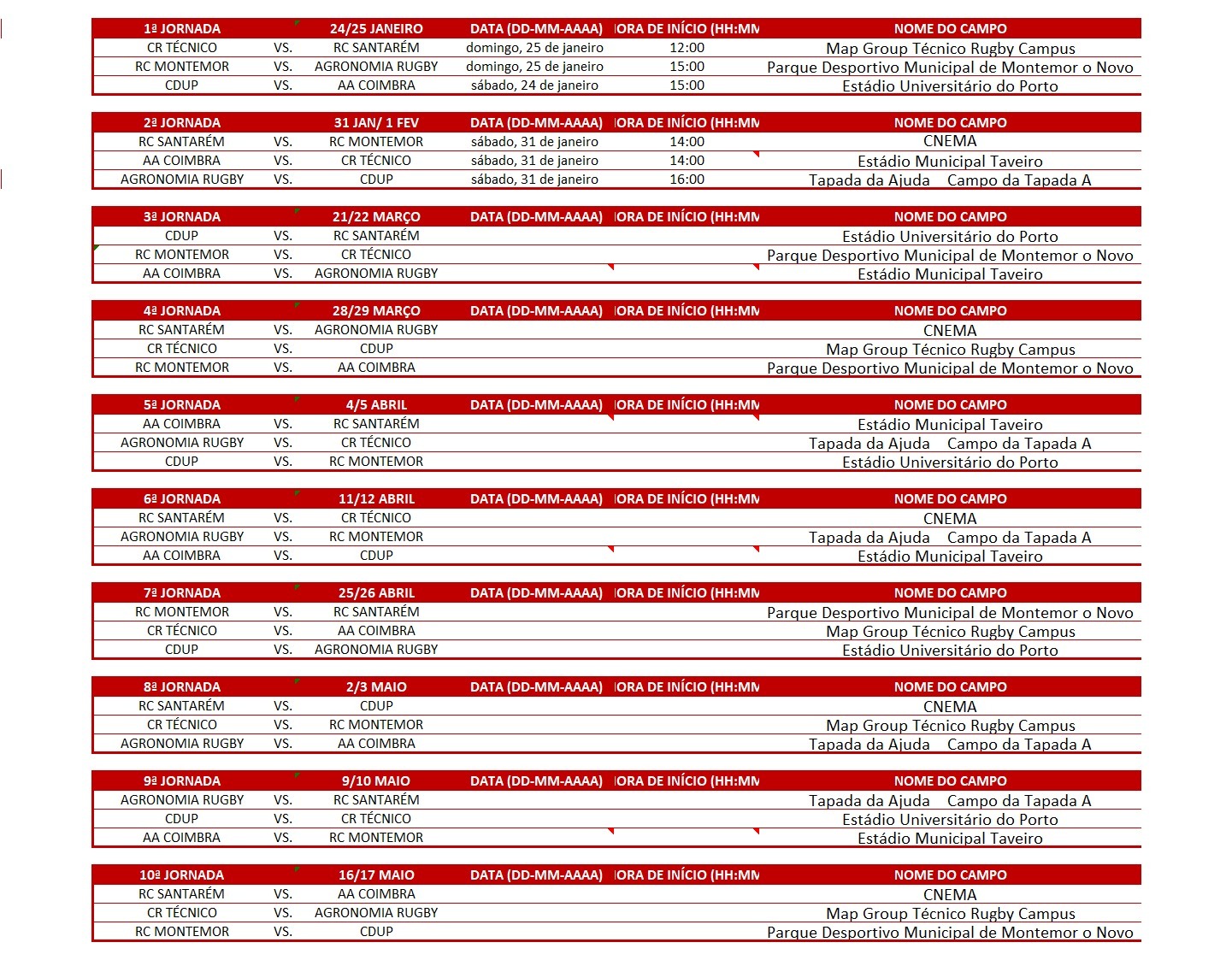 Os dois primeiros classificados de cada grupo irão disputar a fase de apuramento de campeão, enquanto os dois últimos lutarão pela manutenção na principal divisão do rugby português. Ambas as fases serão disputadas em duas voltas, totalizando 10 jornadas para cada grupo.