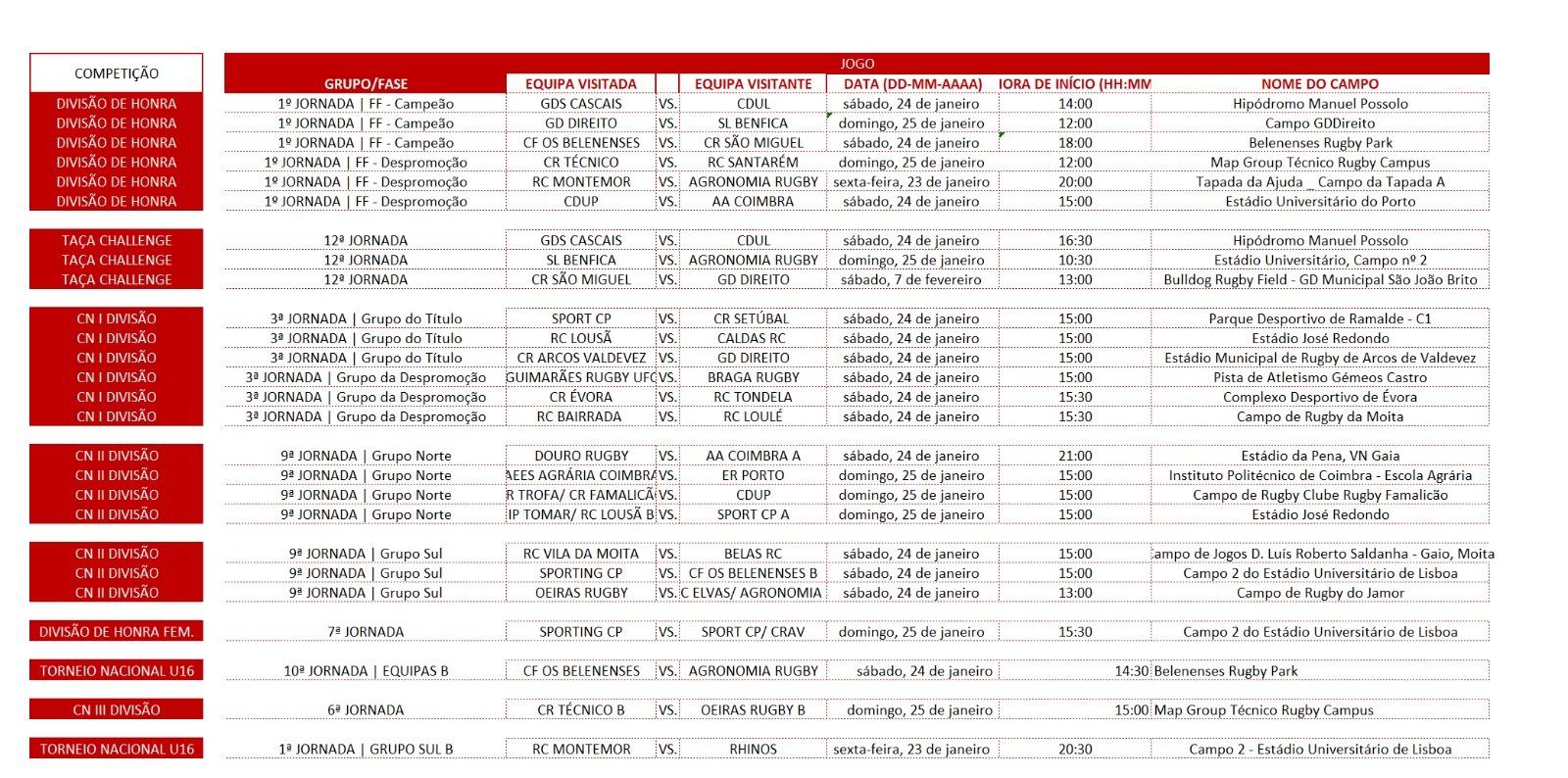 Calendário CN: 24 & 25 de Janeiro