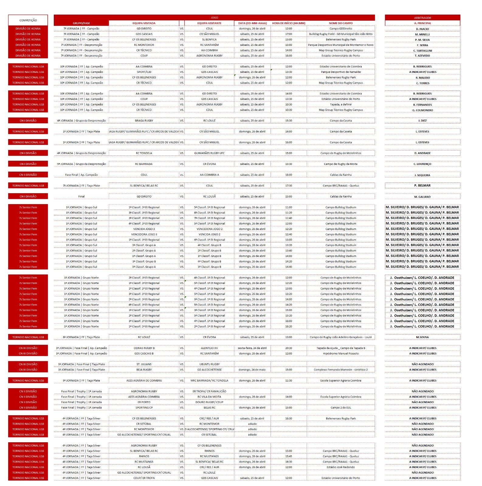 Calendário CN: 25 & 26 de Abril