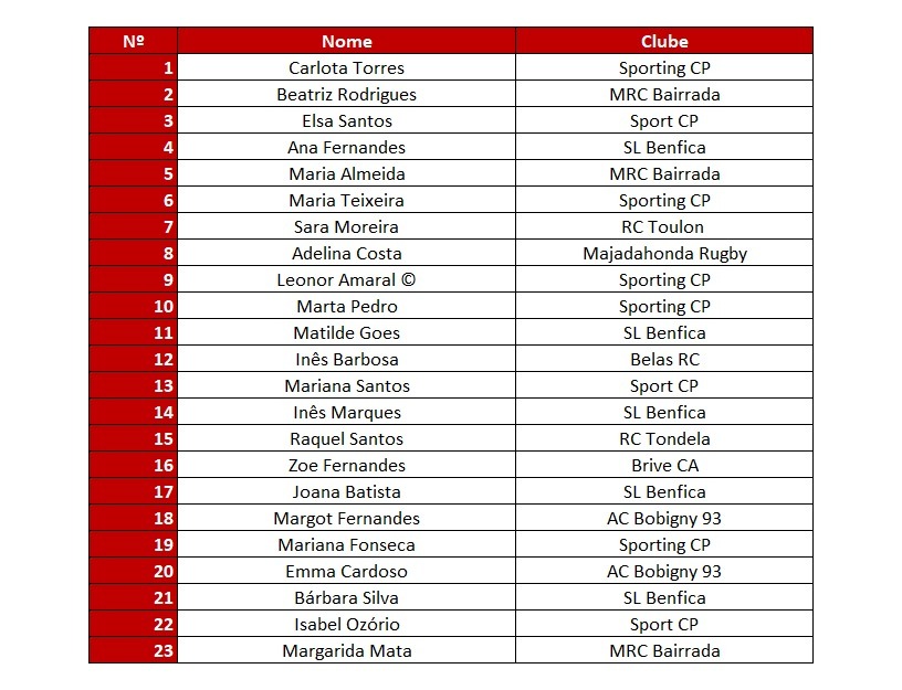 PORTUGAL RUGBY - Convocadas: Países Baixos x Portugal