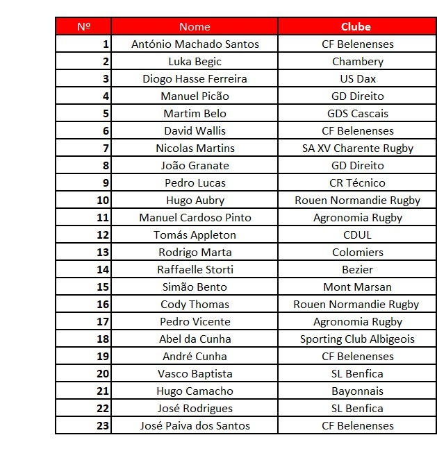 A FPR vem por este meio divulgar os 23 convocados para o primeiro jogo do Rugby Europe Championship 2024, frente à Bélgica: