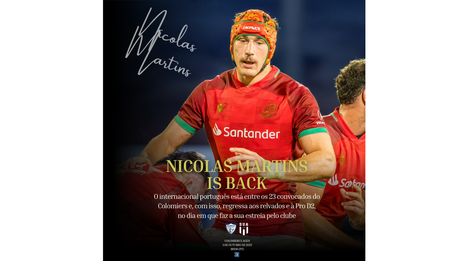 Nicolas Martins, asa de 26 anos, é atualmente uma das figuras mais mediáticas e reconhecidas do rugby português, sobretudo desde a participação no Mundial de 2023. Depois de uma passagem com pouca utilização no Top 14, o internacional português está de regresso à ProD2, onde irá reforçar o Colomiers, juntando-se assim a Rodrigo Marta e Vincent Pinto.
